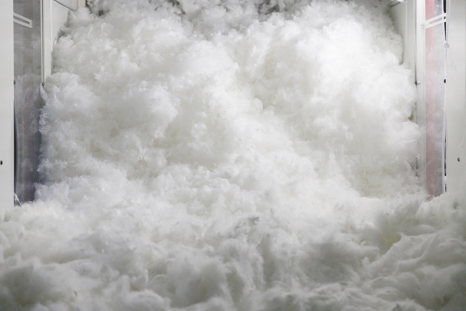 最も燃えにくい繊維の一つに「炭素繊維」がありますが、これは黒色で非常に高価。そのため、多くの製品では難燃剤を後から加工します。しかし、この難燃剤も万能ではなく、不織布の風合いを少し硬くしてしまうことがあります。求められる難燃レベル、風合い、そしてコスト。この三つの要素を、お客様にとっての最適解へと導くのが、私たちの役割です。
