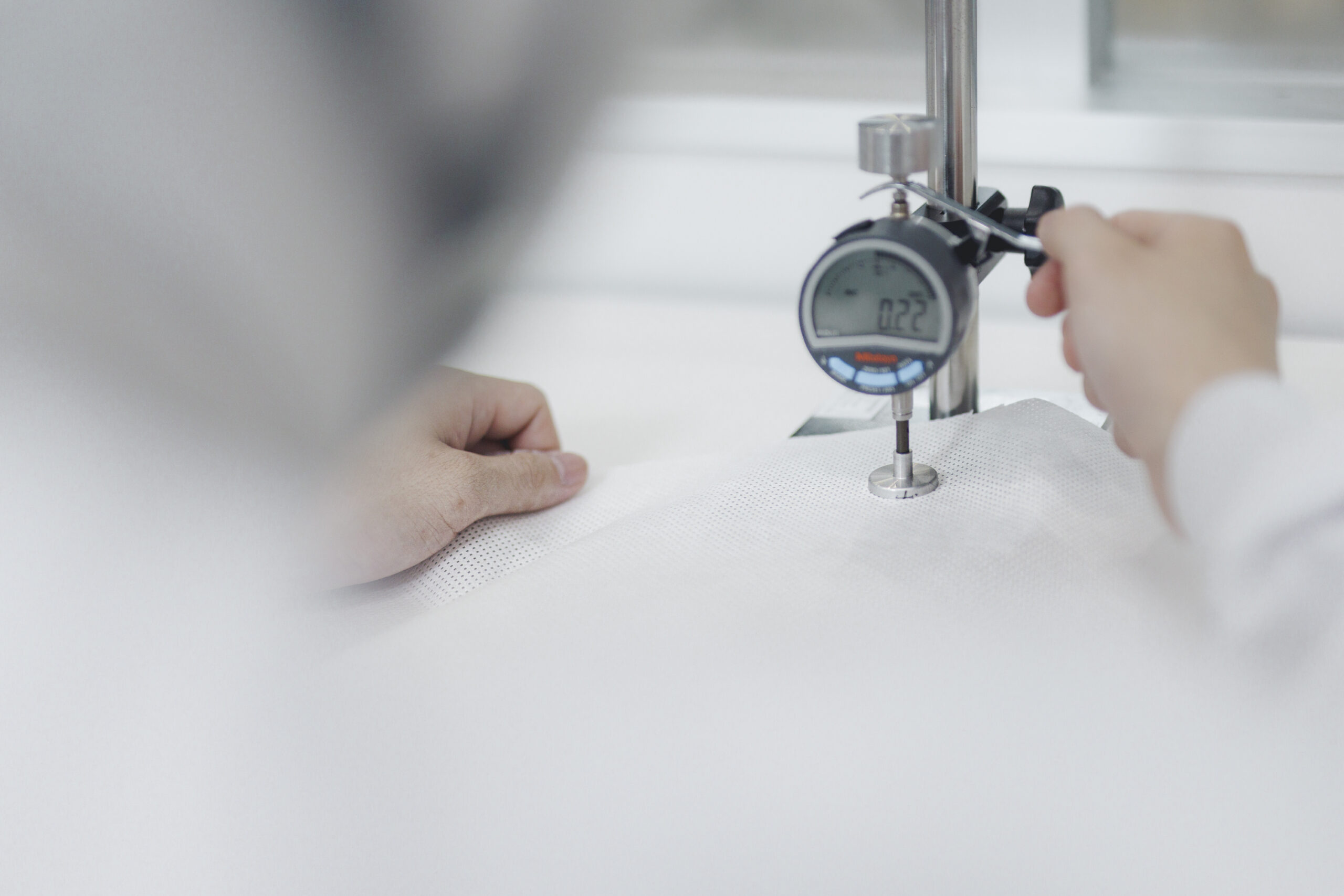 目的: 材料開発の初期段階など、まだ大きな不織布が作れない時に、少量の材料で基本的な性能を調べるための試験です。